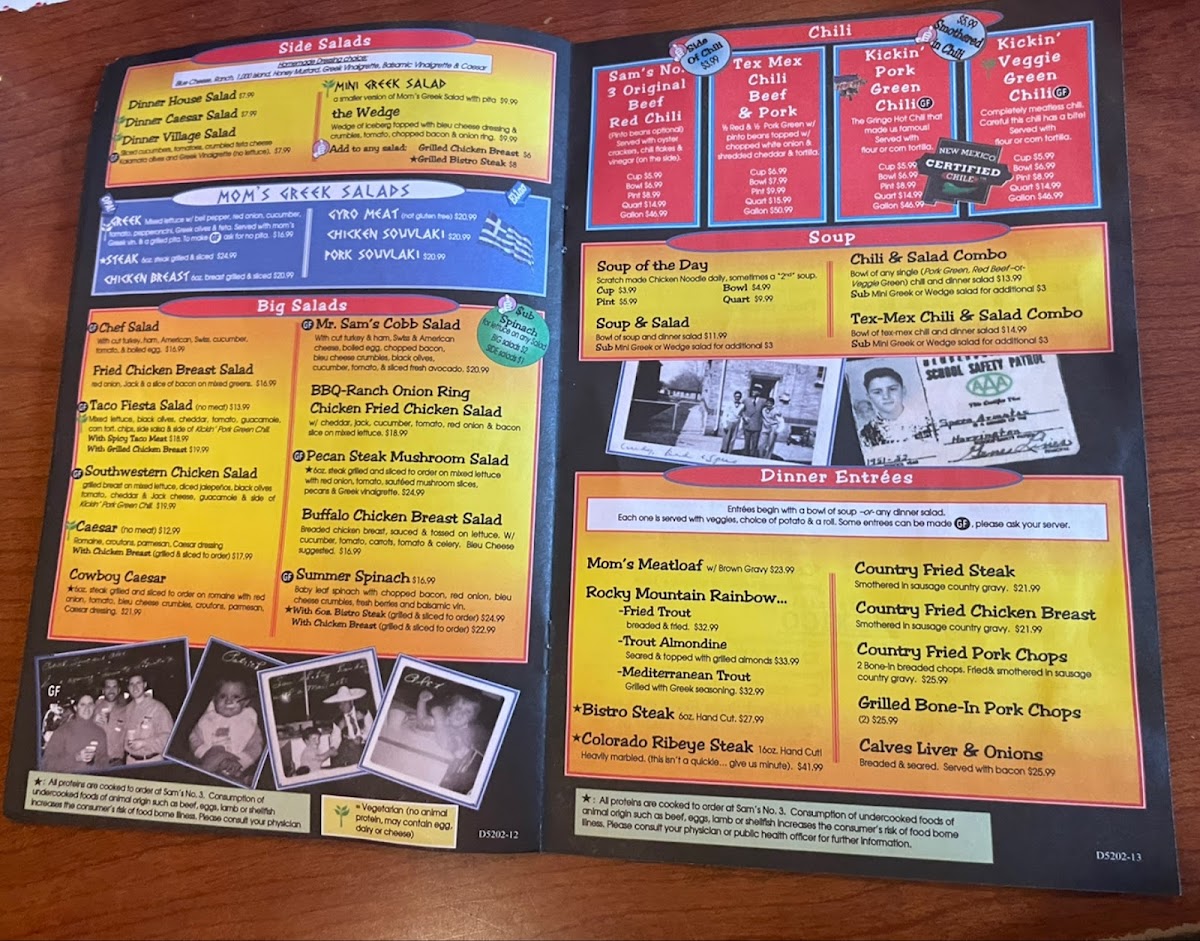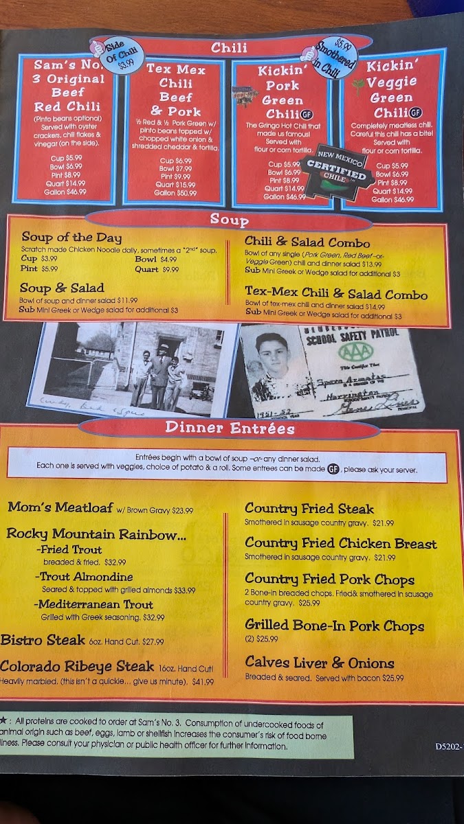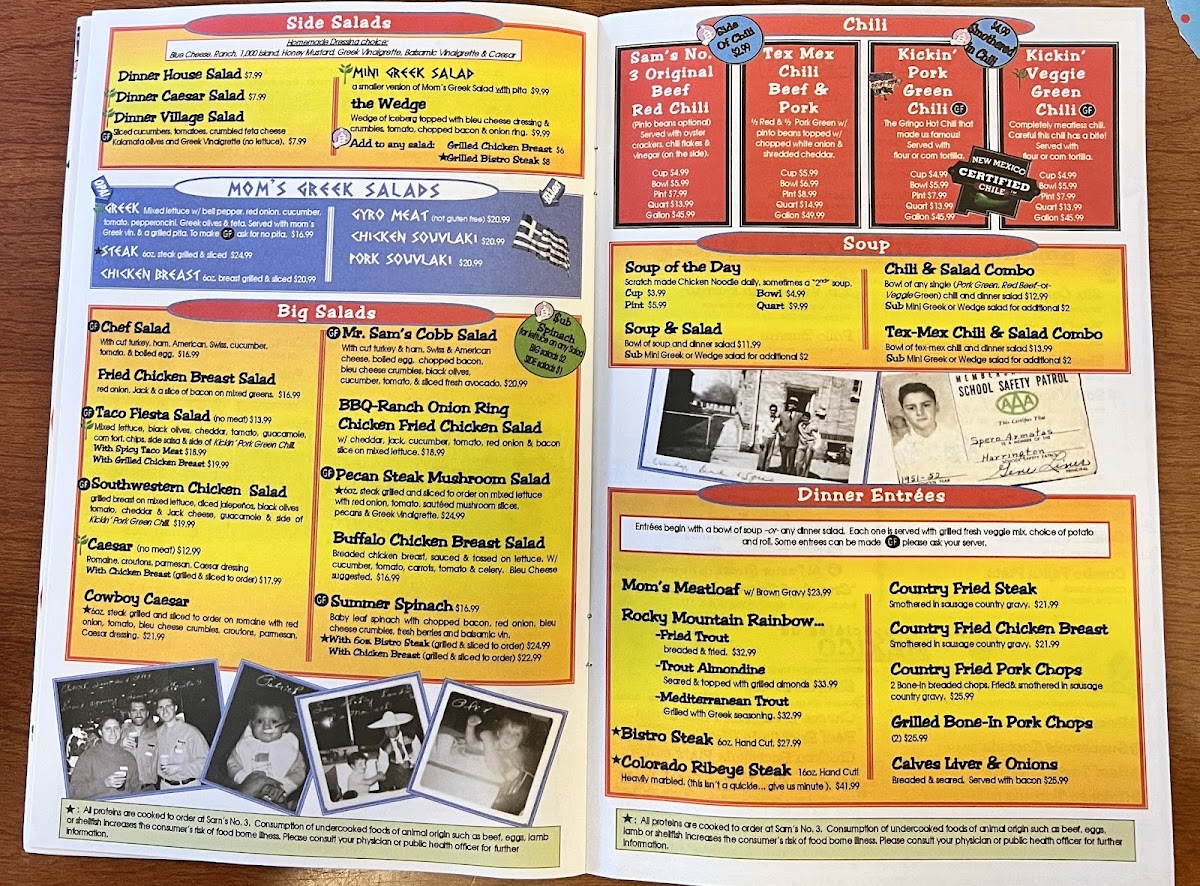 Sam's No. 3 Menu